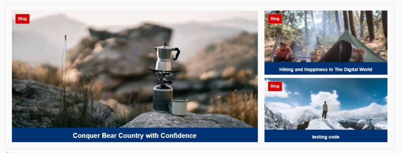 - Large featured post (2/3 width) with two smaller posts (1/3 width each)